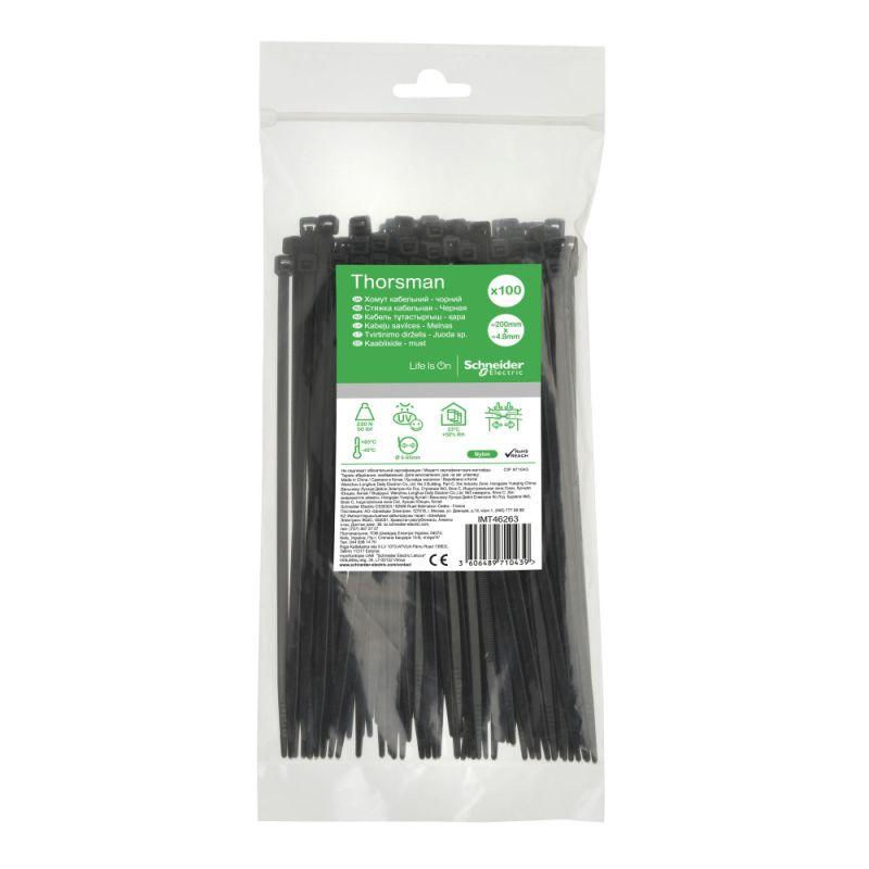 Стяжка кабельная 200х4.8 черн. (уп.100шт) SchE IMT46263