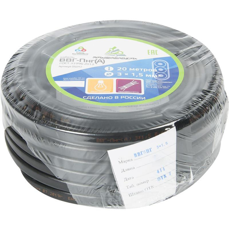 Кабель ВВГ-Пнг(А) 3х1.5 ок (N PE) 0.66кВ (бухта 20м) (шт) АЛЬФАКАБЕЛЬ 45995