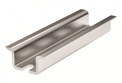 В разрезе профиль относится к рейкам омега-типа (DIN), соответствуя международным стандартам и российскому ГОСТ Р МЭК 60715-2003. Профиль обеспечивает надежное, быстрое и компактное размещение модульного оборудования. удобство, качество и производительность электрического монтажа значительно повышаются.
