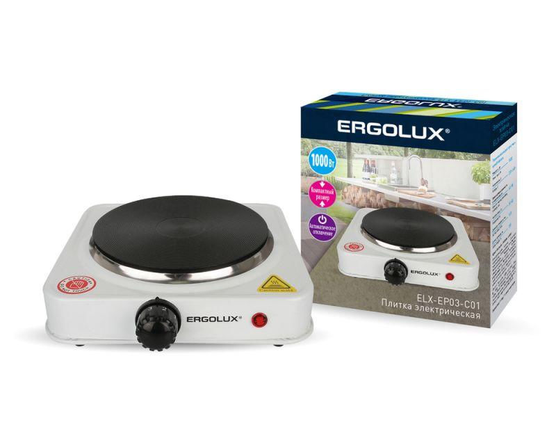 Электроплитка ELX-EP03-C01 1 конф. дисковый нагр. эл. 1000Вт 220-240В бел. Ergolux 13438
