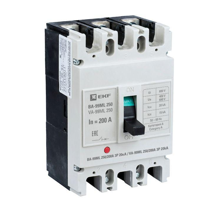 Выключатель автоматический 3п 250/200А 20кА ВА-99МL Basic EKF mccb99-250-200mi