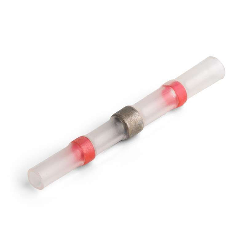 • по краям соединителя на внутренней поверхности термоусаживаемой трубки интегрированы цветные пояски термоплавкого клея, обеспечивающие полную герметичность соединения после усадки