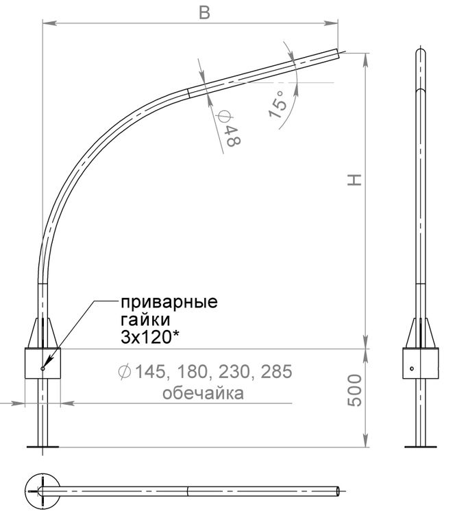 Размеры: высота Н 1500 мм, вылет В 1500 мм, G или D 285 мм, масса 26 кг.