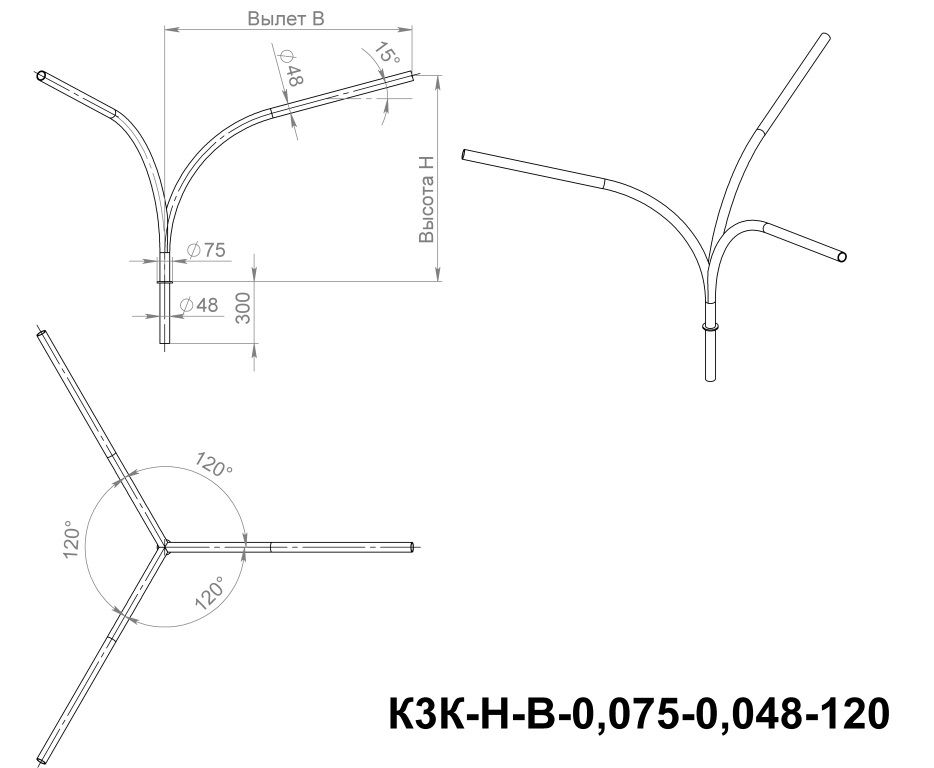 Кронштейн для 3 светильников К3К-1,0-1,5-0,075-0,048-180 горячее цинкование