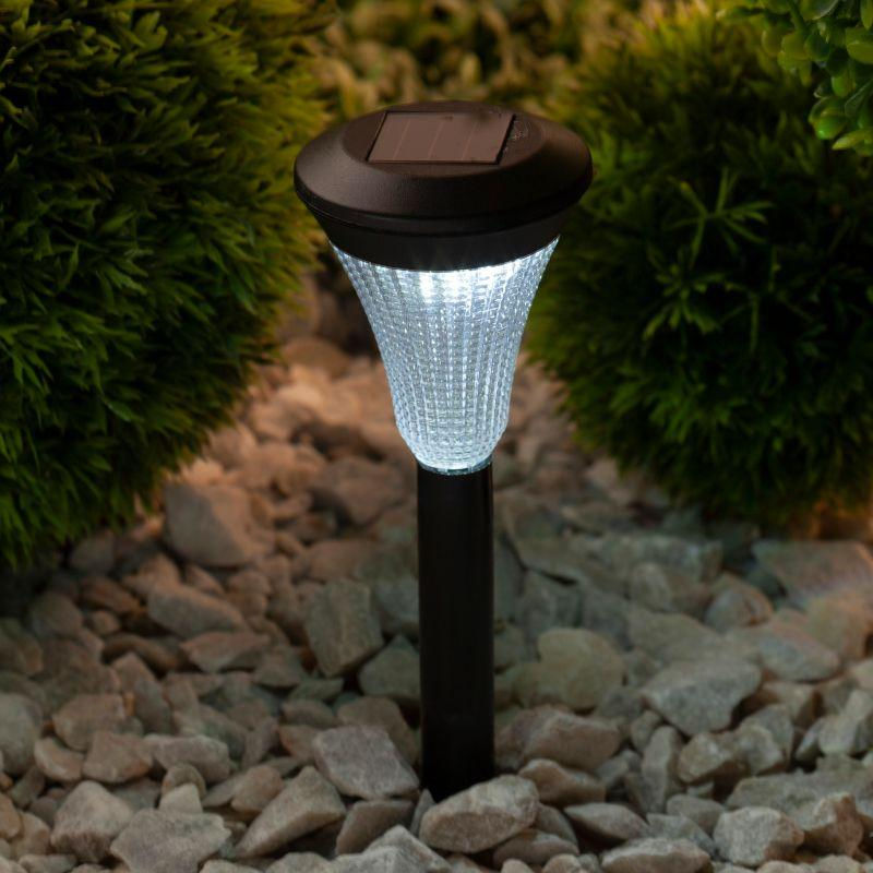Классическая пластиковая модель садового светильника. Рифленое стекло плафона обеспечивает оригинальное свечение и красивые блики на освещаемой поверхности. Соотношение привлекательного дизайна и скромной цены обеспечивает стабильный спрос от сезона к сезону.