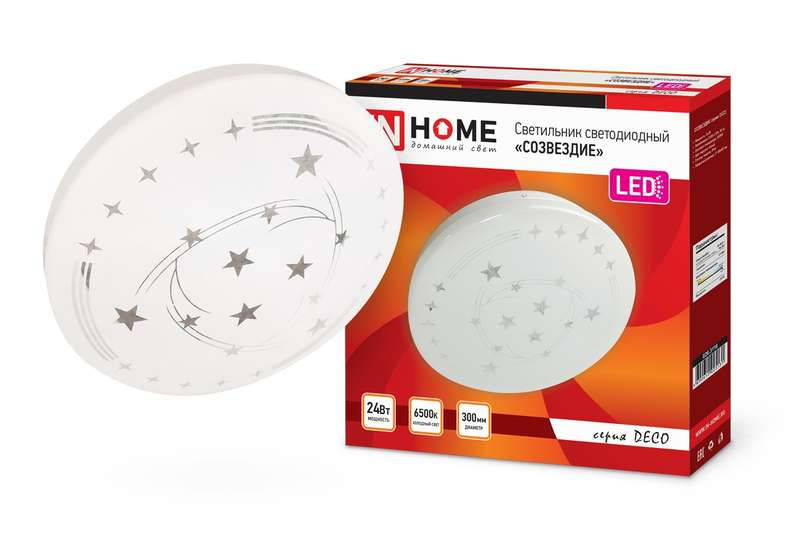 Светодиодный светильник серии DECO от компании In Home с динамичным рисунком в виде хоровода созвездий станет удачным дополнением жилого интерьера. Линейка светильников СОЗВЕЗДИЕ представлена в диапазоне мощностей от 12 Вт до 48 Вт, что позволяют подобрать оптимальный осветительный прибор, в зависимости от конфигурации и габаритов помещения. Светодиодные светильники СОЗВЕЗДИЕ серии DECO предназначены для внутреннего освещения жилых помещений, подъездов и сферы ЖКХ, офисных и административных учреждений, магазинов, а также холлов, коридоров, лестничных пролётов, подсобок и других помещений вспомогательного назначения. Современные светильники серии DECO, работающие на основе последнего поколения светодиодов, обеспечивают яркий равномерный световой поток при максимальной экономии электроэнергии. Отсутствие пульсации гарантирует сохранность здоровья глаз. Светодиодные светильники являются одним из самых экологически безвредных источников света и не требуют специальной утилизации и переработки.