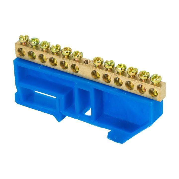 Шина нулевая N 6х9 12 отвер. латунь син. изолятор на DIN-рейку PROxima EKF sn0-63-12-d