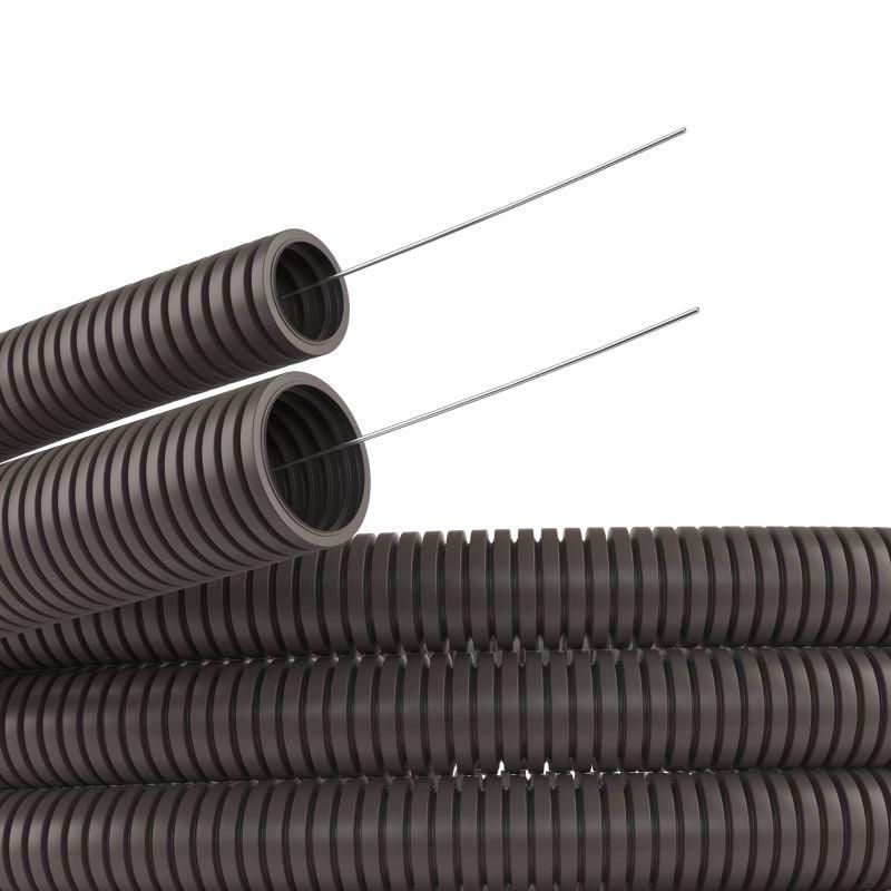 Труба гофрированная ПА 6 d17мм dвнутр.16.8мм dвнешн.21.2мм с протяжкой ПВ-0 темн. сер. (уп.50м) DKC PA611721F0
