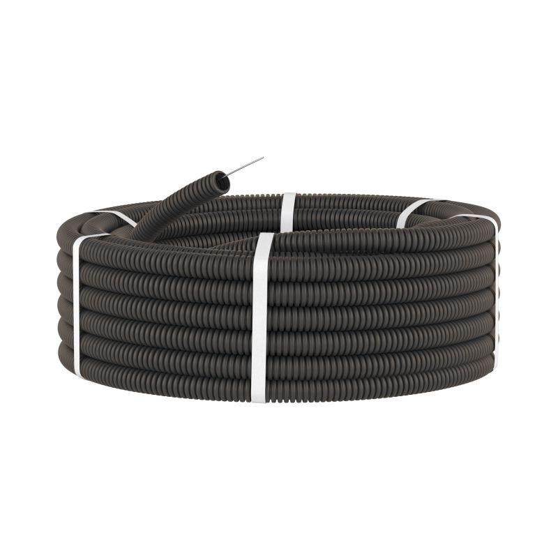 Труба гофрированная ПНД гибкая легкая d20мм с протяжкой черн. (уп.100м) DKC 71720