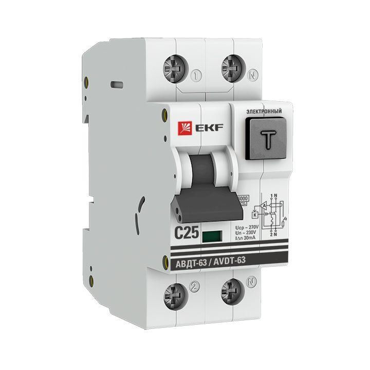 Выключатель автоматический дифференциального тока 2п C 25А 30мА тип A 6кА АВДТ-63 2мод. электрон. PROxima EKF DA63-25-30e